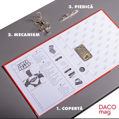 Mai mult de atat, biblioraftul este prevazut pe cotor cu eticheta de carton interschimbabila, pentru personalizare si pentru a gasi mai usor documentele de care ai nevoie mai rapid. Interiorul este din carton alb, exteriorul din carton plastifiat in diverse culori.