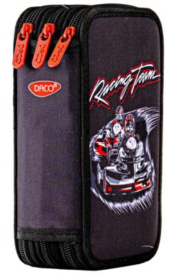 Penar scolar triplu echipat DACO – model Circuit Kart, 3 compartimente, 46 piese incluse