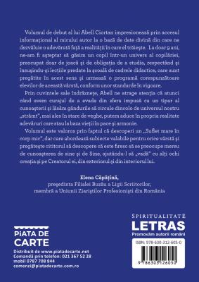 Volumul de debut al lui Abell Ciortan impresioneaza prin accesul informational al micului autor la o baza de date divina din care ne dezvaluie o adevarata fata a realitatii in care el traieste. La doar 9 ani, ne-am fi asteptat sa gasim un copil intr-un univers al copilariei, preocupat doar de joaca si de obligatia de a studia, respectand si insusindu-si lectiile predate la scoala de cadrele didactice, care sunt pregatite in acest sens si urmeaza o programa corespunzatoare elevilor de aceasta varsta, conform unor standarde in vigoare.