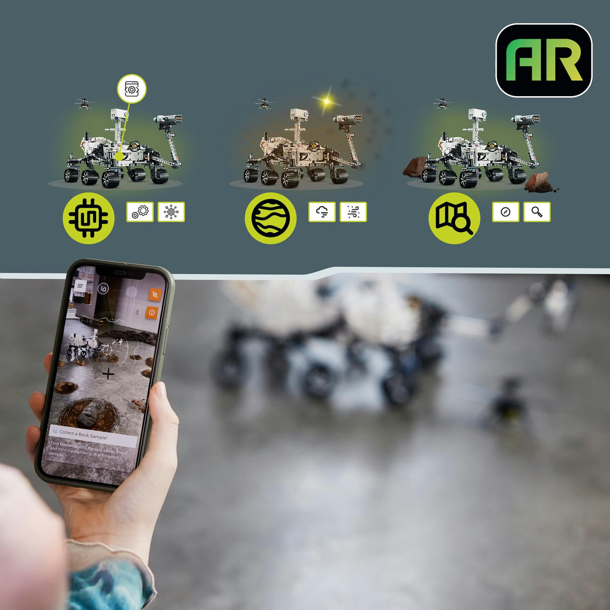 Acest model de jucarie are o multime de detalii care ii ajuta pe copii sa afle mai multe despre provocarile roverului NASA Perseverance si elicopterului Ingenuity care il insoteste. Roverul are un sistem de directie de 360° si un brat mobil, precum si suspensie articulata care permite vehiculului sa-si mentina tractiunea pe cele 6 roti pe suprafete neregulate. Alte detalii construibile sunt o sursa de alimentare, antene, camere de filmare si instrumente stiintifice.