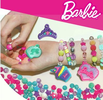 - pe langa margelele colorate, veti gasi in interior niste brelocuri foarte simpatice cu tematica Barbie pentru a personaliza bratarile si colierele pe care doriti sa le faceti cadou persoanelor dragi