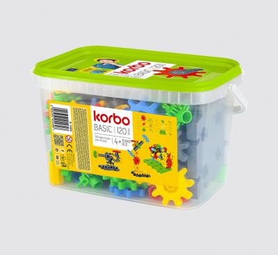 Descopera lumea constructiilor distractive cu setul Korbo Basic 120, care este creat pe principiul Gandeste, construieste, roteste.